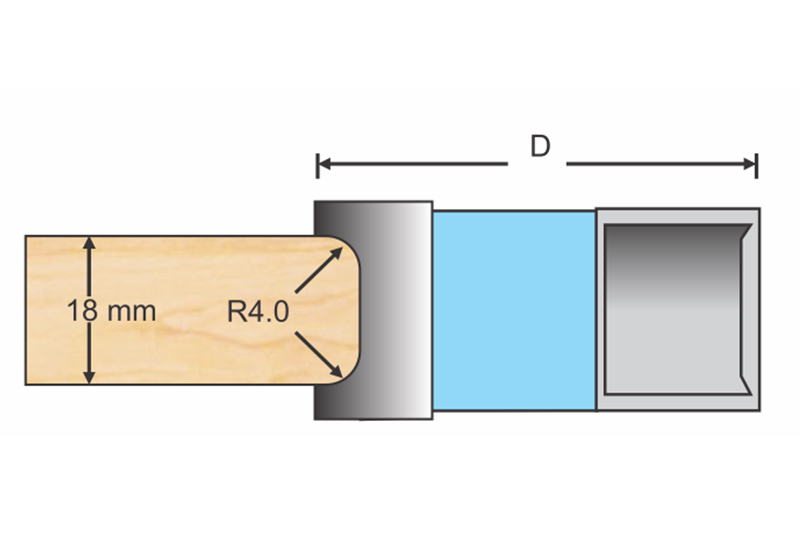 Application: Perfect radius with trim in all materials, but ideal on solid wood, plywood, particle board, and MDF
